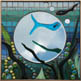 Outdoor piece using glass and mirror tiles.